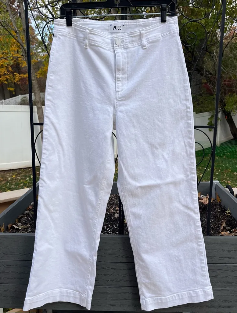 Paige Women’s Nellie Culotte Cropped Wide Leg High Rise Jeans in Crisp White, Size 29. Waist 31” In... Show more