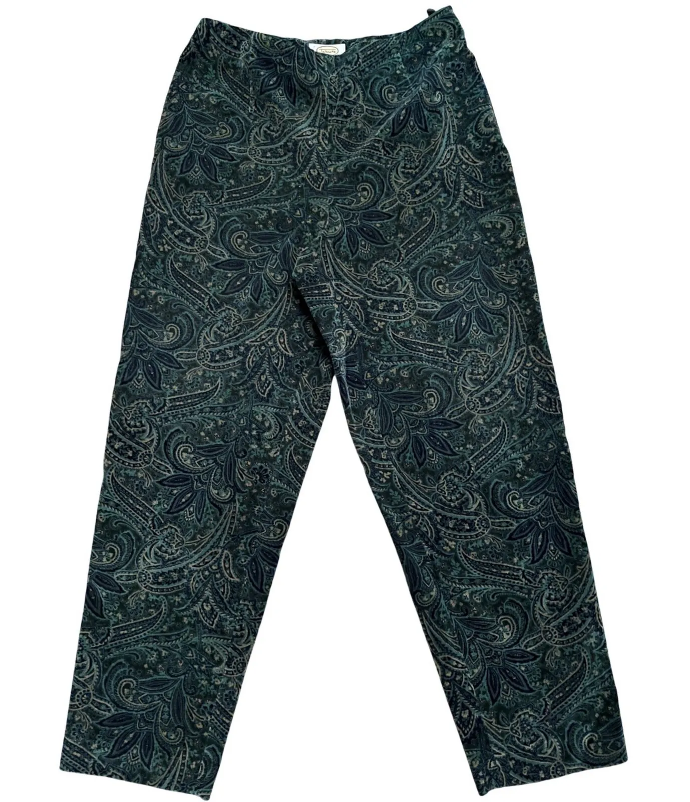 Rich green paisley stretch velvet pants from Talbots Petites with a soft velour feel. Side zipper wi... Show more