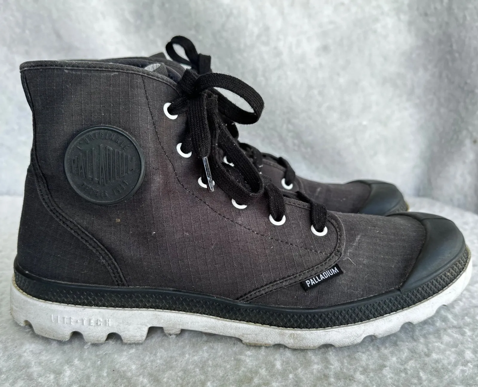 Ready for anything, these Palladium Pampa Hi Lite boots deliver iconic style and reliable comfort. Discover the perfect fusion of urban edge and outdoor practicality as you make a bold statement wherever you go. These boots feature a classic high-top silhouette, a durable lug outsole for excellent traction, and a comfortable cushioned footbed for all-day wear. Whether you're navigating city streets or exploring rugged trails, these boots will keep your feet protected and looking great. Ideal for casual outings, weekend adventures, or festival season. Style: Bootie Department: Unisex Adults Upper Material: Cotton UK Shoe Size: 11 Pattern: Solid Theme: Outdoor, Streetwear, Grunge Shoe Width: M Closure: Lace Up Features: Waterproof, Cushioned, Lightweight Outsole Material: Rubber Insole Material: Fabric Model: Pampa Hi Lite EU Shoe Size: 44 Type: Boot Keywords: Palladium, Pampa Hi Lite, Boots, Ankle Boots, Canvas Boots, Waterproof, Hiking Boots, Casual Boots, Mens Boots, Womens Boots, Unisex Boots, Streetwear Boots, Outdoor Boots, Travel Boots