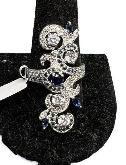 Palm Beach Jewelry Simulated Sapphire CZ Elongated Vine Ring Silver Tone Sz 12 N - $54 New With Tags - From Christy