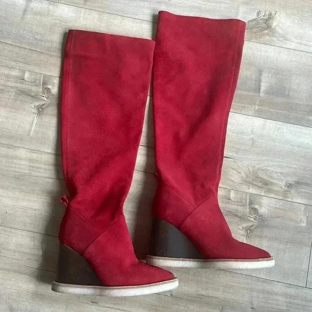 PALOMA BARCELO Serafine Over-the-Knee Red Pointy Suede Wedge Boots Sz 36(5.5) - $350 - From Elizabeth