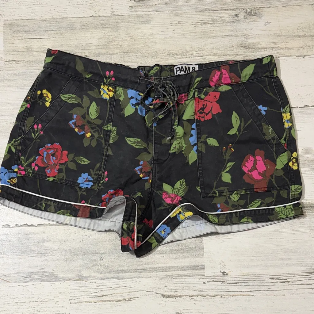 Pam & Gela Black Floral High Waist Shorts Size Large - $46 - From Forgoodness