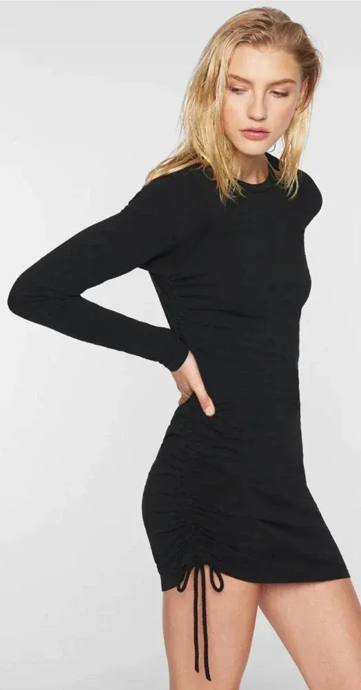 Brand new with tags Pam & Gela Side Ruched Dress in Black Long sleeve knit dress Side ruching detail 100% Cotton - Slub Jersey Armpit to armpit is approx 16" Waist is approx 14.5" Hip is approx 17" Length is approx 37"