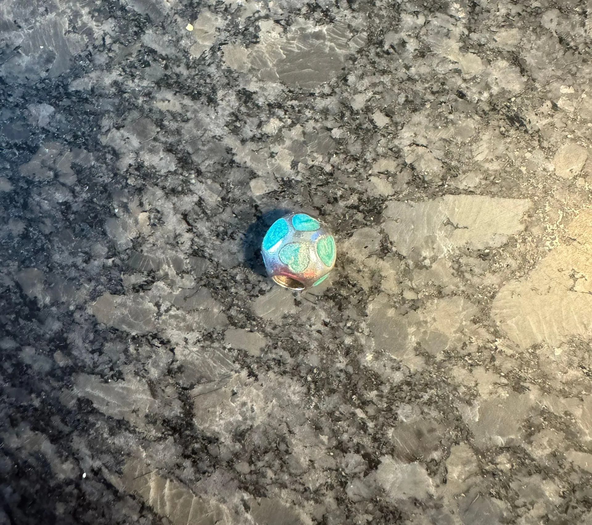 Sterling silver ball with sparkly blue hearts! Just shined and is in excellent condition!