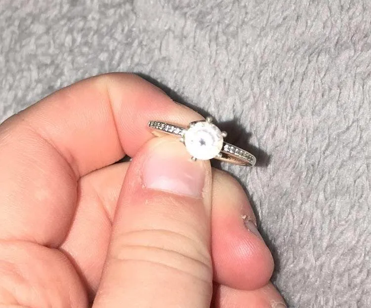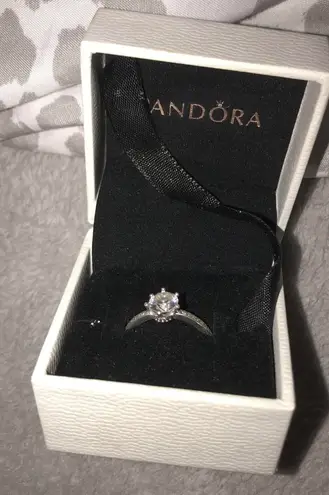 Pandora clear sparkling crown solitaire princess ring size 8 really pretty some scratches on the bot... Show more
