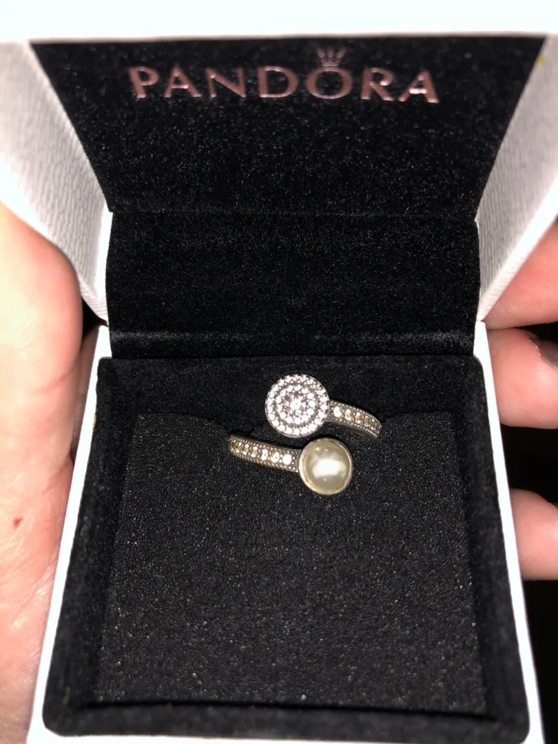 Cute Pandora ring! In good condition other than some ware on the pearl. Size 4.5