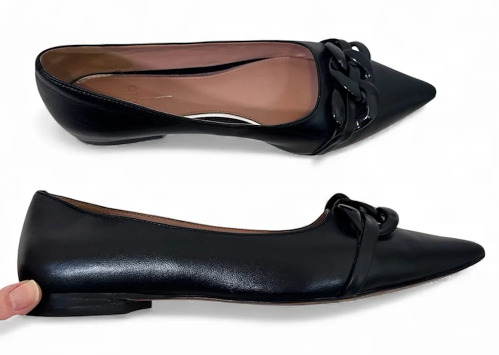 Paolo Black Leather Slip On Pointed Toe Flats Womens 8 Preppy Chain Detail - $38 - From Lisa