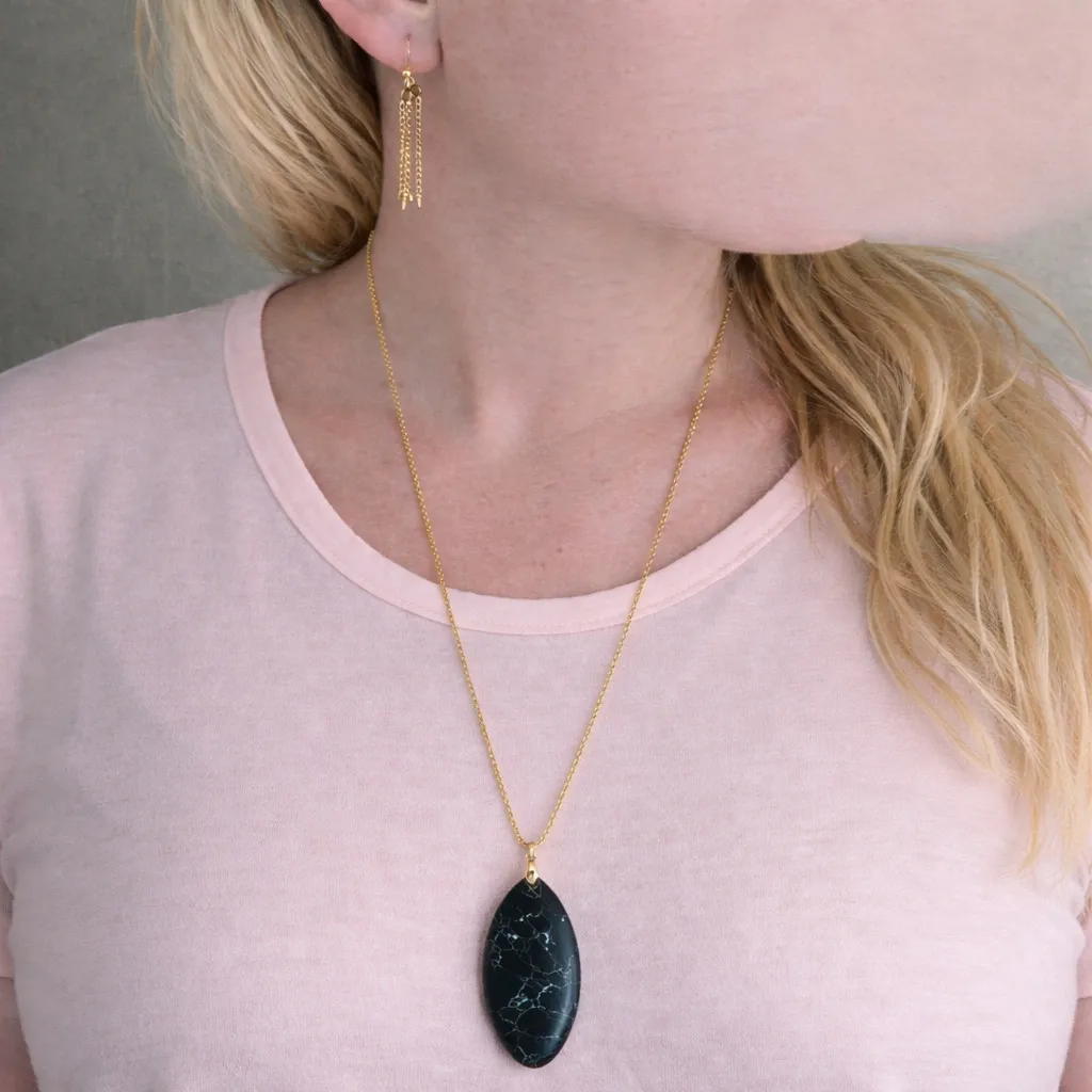 Paparazzi Black Crackle Teardrop Stone Necklace & Gold Chain Tassel Earrings Set SEO Description Bo... Show more