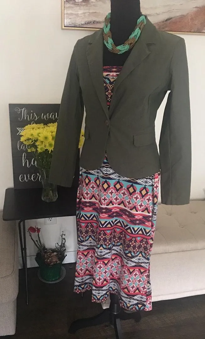 Blazer is medium from papaya and skirt is small unbranded. Skirt can be worn as a dress whatever sui... Show more
