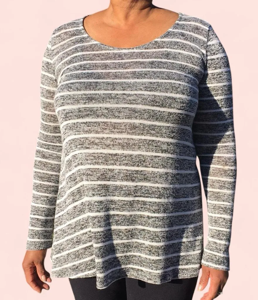 Striped long sleeved top. Sleeve length (measured from pit to wrist) is 19 inches. From shoulder to... Show more