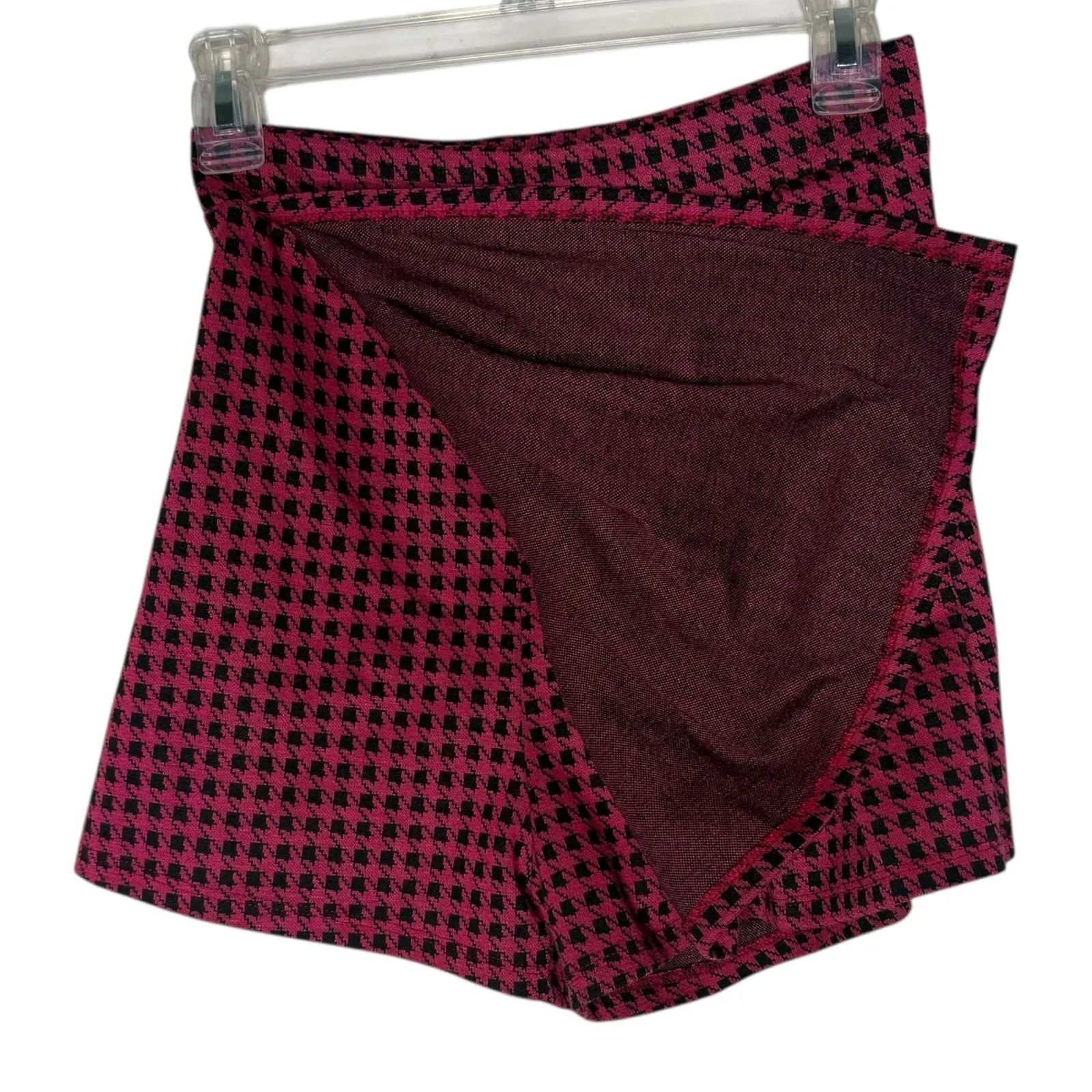 Papaya Houndstooth Mini Skort Size M Faux Skirt with Shorts Pleated Pink y2k Pre Owned, In Good Sha... Show more
