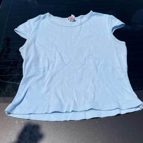 Preowned in good condition. No tags attach. Baby blue color with a scoopcuff baby doll fit. Origin... Show more