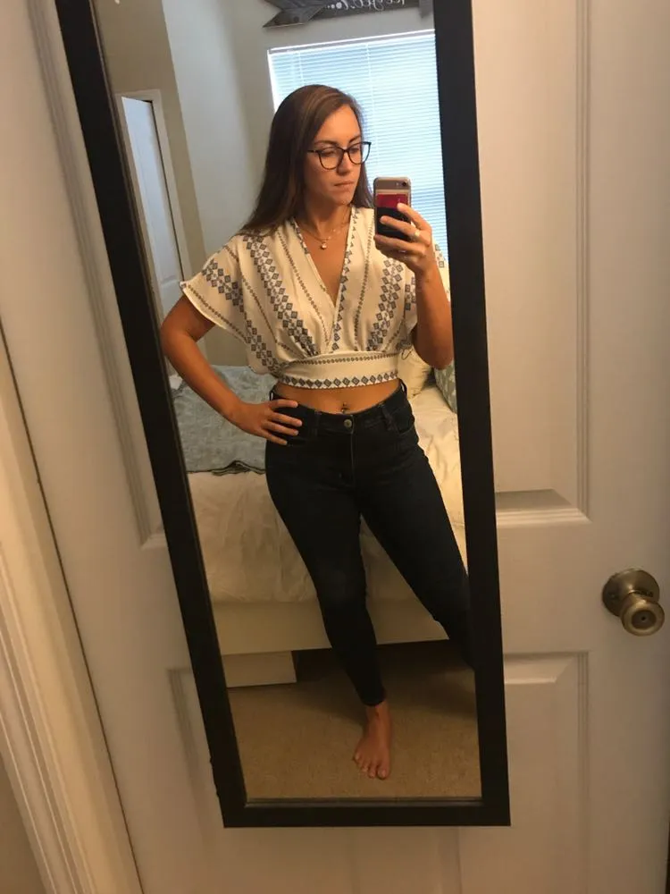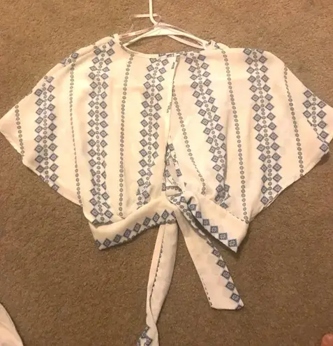 Plunging v-neck crop top with loose fitting sleeves that wraps around and ties in the back. NEVER WO... Show more