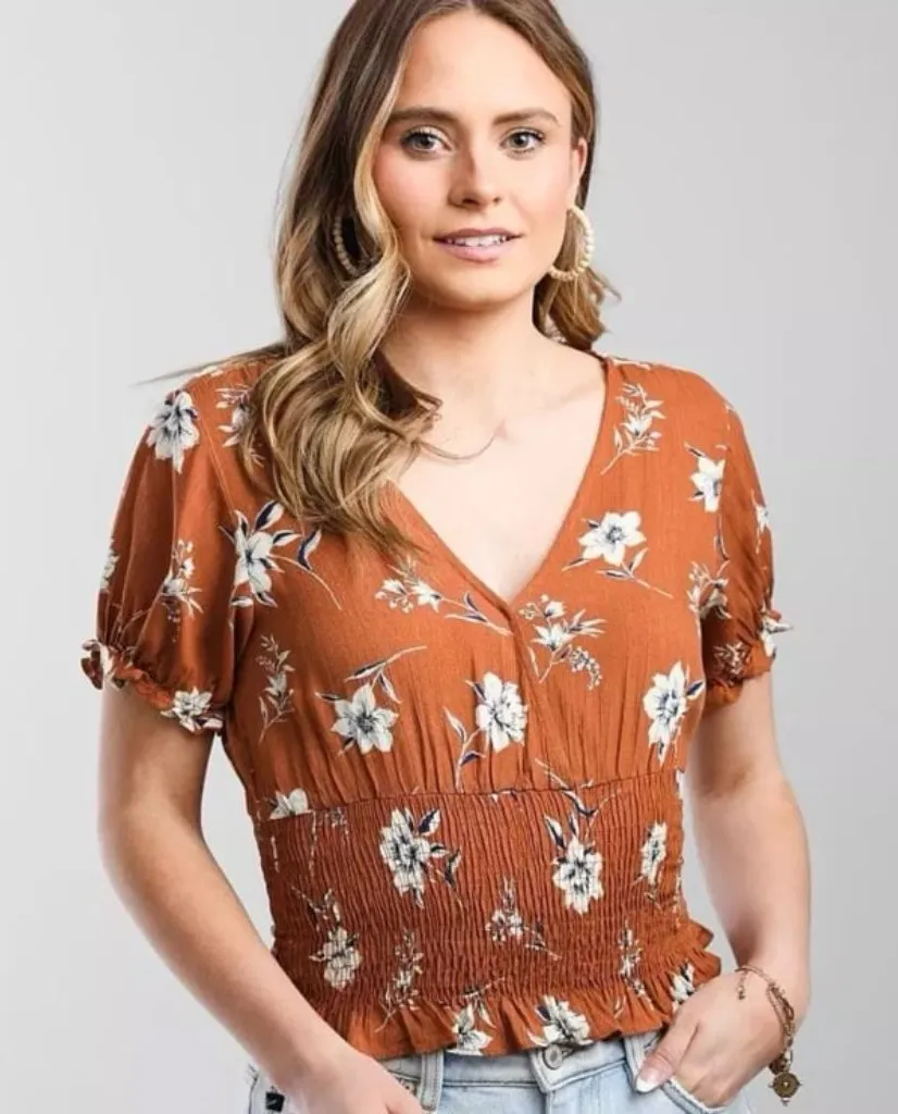 Paper Crane Floral Smocked Hem Top Orange Size L - $30 - From Deidre