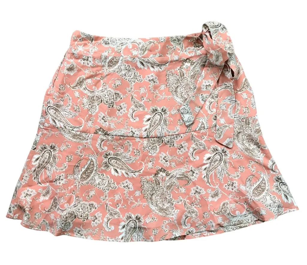 VGUC Paper Crane Paisley Skirt Women's Small Peach, Neutral Colors Lined Side Tie Elas... Show more