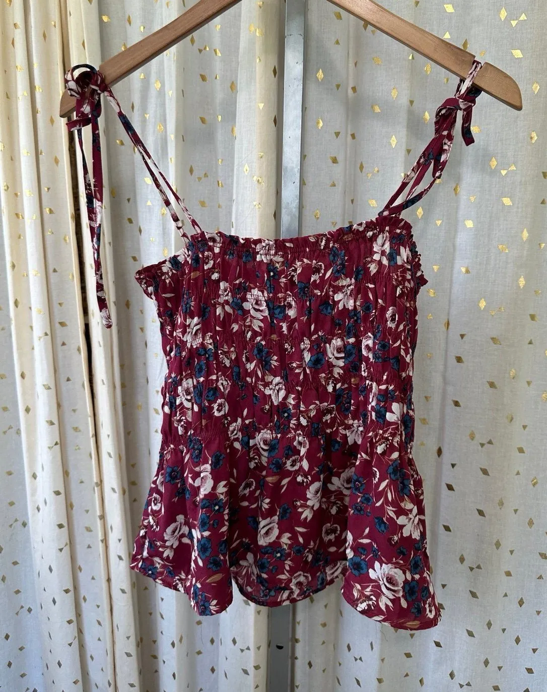 GW59_1250628 It's used, properly cleaned and in good condition Paper Crane Women's Maroon Floral Smo... Show more