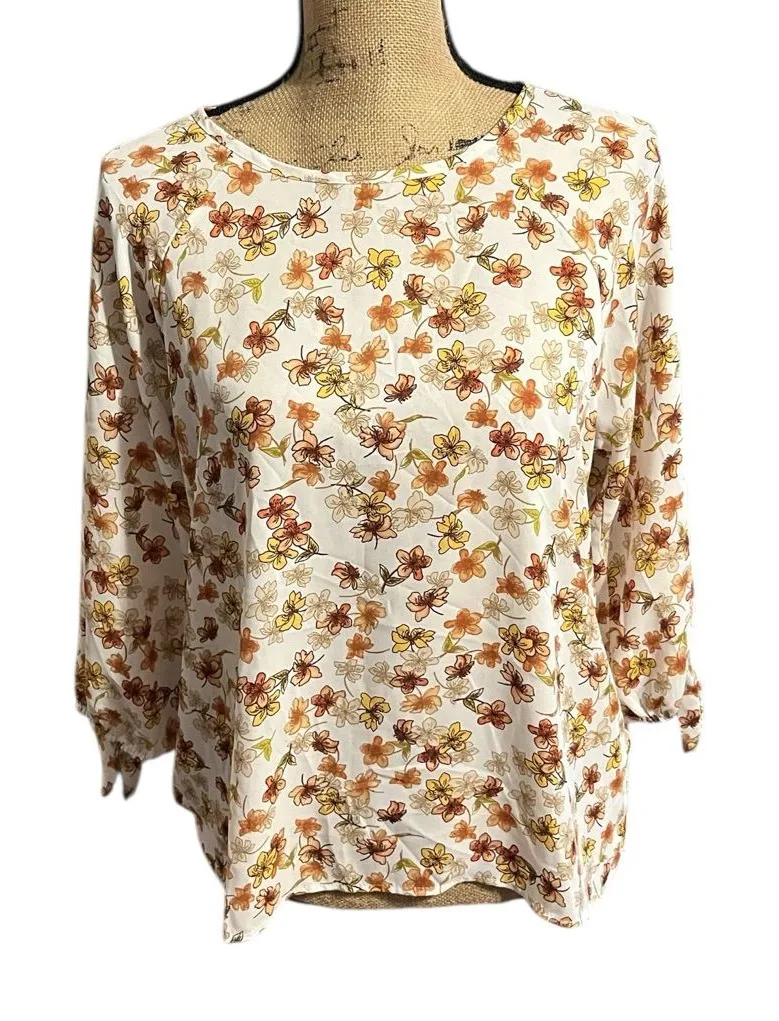 Papermoon Off White Floral Larie Tie Sleeve Blouse Brand New Orange Size M - $24 New With Tags - From Tammy