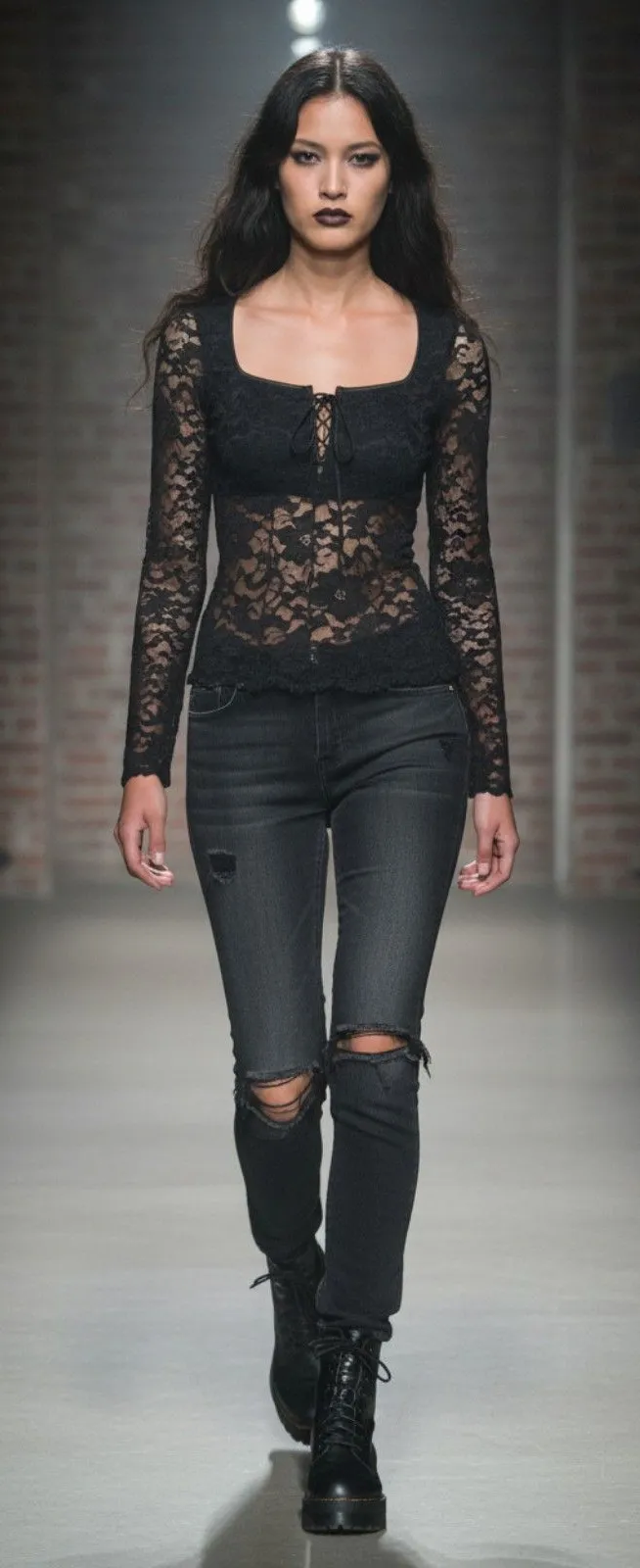 Papillon Blanc Vintage Lace Long Sleeve Corset Bust Grunge Coquette Blouse Size Small Size: Small... Show more