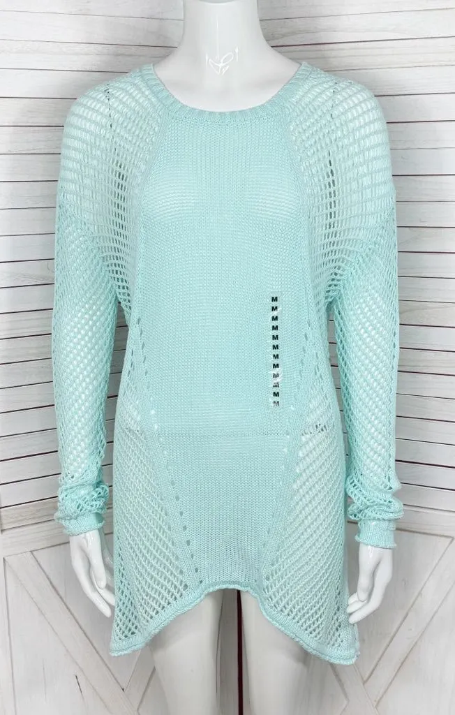 Paradise Shores Open Knit Mesh Beach Sweater Swim Cover Aqua Green Size Medium Aqua Sea Foam gree... Show more