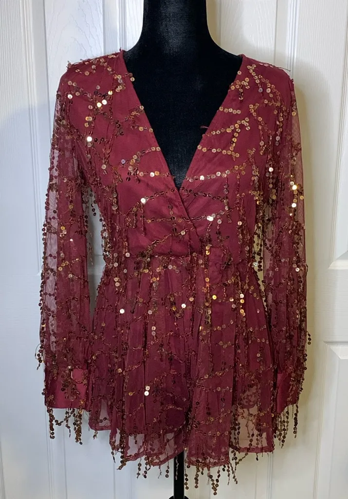 Paradiso Maroon & Gold Sequence Shorts Romper Red - $36 - From Peace N