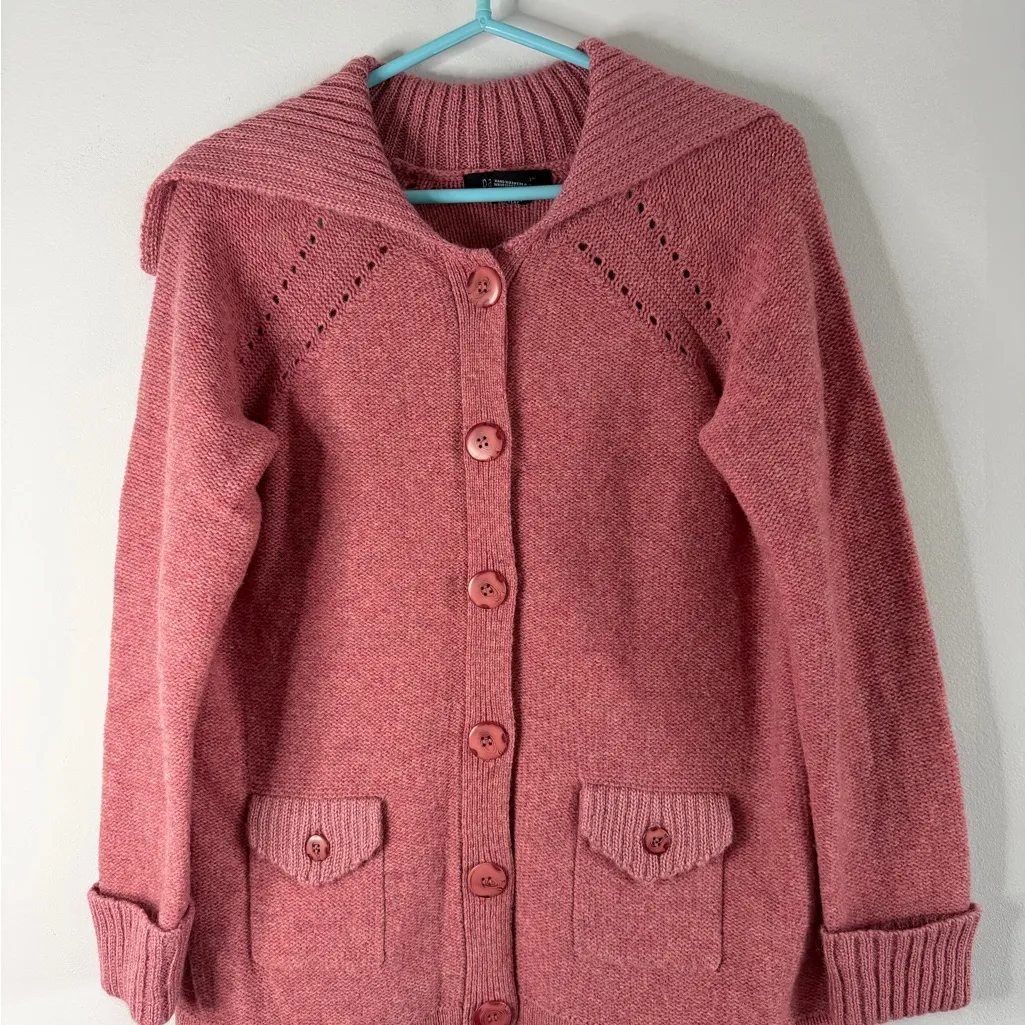 Beautiful Paraphrase Woman Pink Wool & Mohair Cardigan ✨ Level up your winter wardrobe with this stunning, high-quality knit cardigan! It features a gorgeous dusty rose/pink color and a super cozy oversized ribbed collar. The mix of wool and mohair makes it incredibly warm and soft. Why you’ll love it: • 🌸 Premium Materials: Body is 100% Wool; Collar/Cuffs are a soft Mohair blend. • 🌸 Design: Large statement ribbed collar, button-down front, and cute functional pockets with button flaps. • 🌸 Details: Elegant pointelle (open-knit) detailing on the shoulders. • 🌸 Style: Perfect for the Coastal Grandmother, Cottagecore, or Grandmacore aesthetic. Condition: Excellent pre-owned condition! No flaws, holes, or stains. Very well-maintained and ready to wear. Size: XL Fiber Content: • Body: 100% Wool • Collar/Cuffs: 49% Mohair, 51% Acrylic Measurements (Flat Lay): • Pit to Pit: [Insertar medida]” • Length: [Insertar medida]” 🌸 Fast shipping! Etiquetas de Estilo (Style Tags) 1. Cottagecore 2. Wool 3. Boho