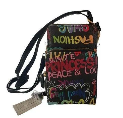Add a touch of urban chic to your look with this graffiti-inspired crossbody bag from Park Avenue. This compact and stylish bag is made from high-quality faux leather and features a vibrant graffiti print design that is sure to turn heads. It has two zippered compartments, providing ample space for your essentials, and an adjustable shoulder strap for comfortable carrying. Whether you're running errands or hitting the town, this crossbody bag is a must-have accessory for any fashion-forward woman. Compact and stylish design High-quality faux leather material Vibrant graffiti print design Two zippered compartments Adjustable shoulder strap