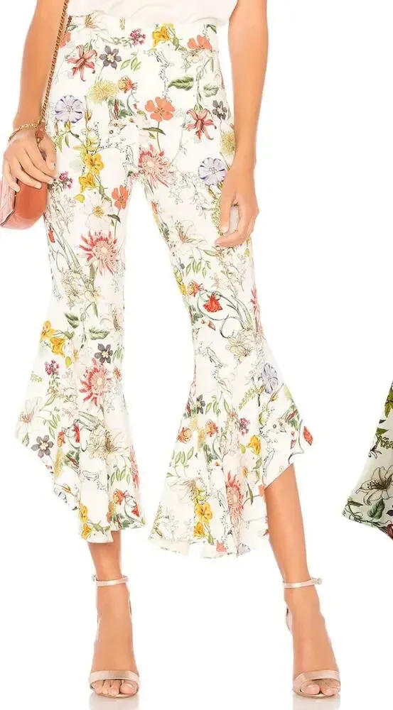 Parker Zizi Pant in Sangria Floral Flared ruffle hem. Hidden side zipper closure. 15" at the knee b... Show more