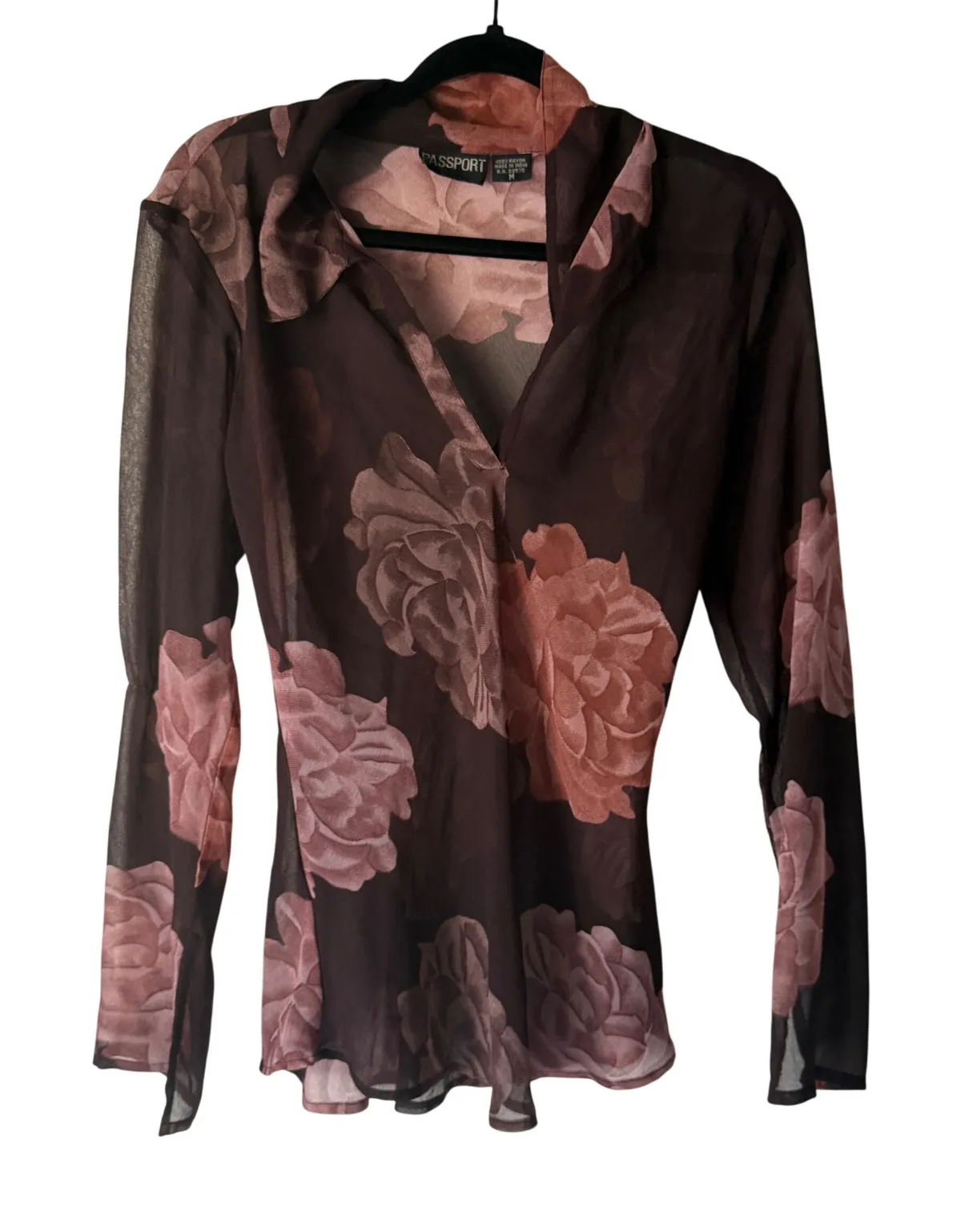 *Snag on the sleev Measurements: • Chest (pit to pit): 17 in • Length (shoulder to hem): 24 in Type: Blouse Department: Women Material: Rayon Neckline: Collared Sleeve Length: Long Sleeve Sleeve Type: Classic/Fitted Sleeve Pattern: Floral Theme: Flower Features: Sheer Fit: Slim Fabric Type: Mesh Occasion: Casual, Party/Cocktail Closure: Pullover Season: Spring, Summer, Fall Garment Care: Dry Clean Only Keywords: sheer, floral print, collared, long sleeve, mesh, lightweight, transparent, vneck, designer, fashion, trendy, statement piece, feminine FAQS: We ship out items every 1-2 days due to high volume shipping the mail carrier does not scan the items until it reaches the next facility.This can take up to 48+Hours for tracking to update. We provide measurements in the photos as well as the descriptions. We add as many details as possible until the item is put into inventory. We are unable to take the item out of inventory for additional information. Due to a high volume store we are unable to answer these questions individually.