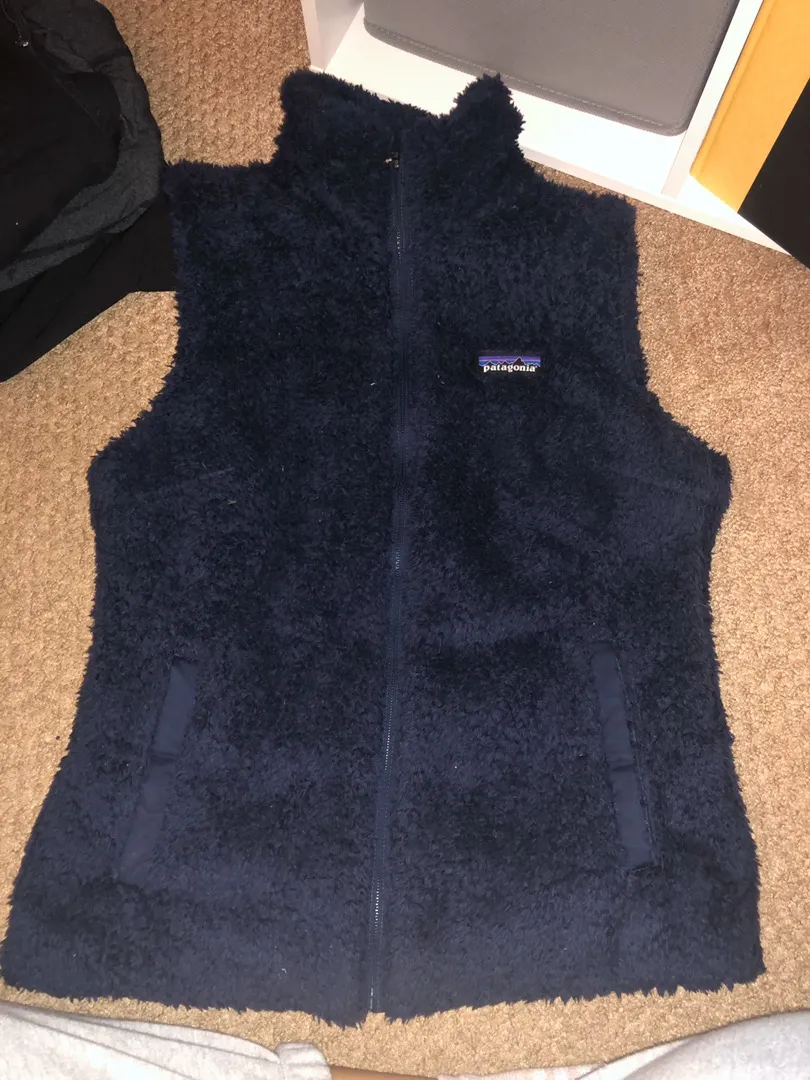 worn a few times. in perfect condition. so so fuzzy. navy blue.