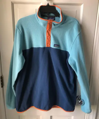 Super soft pullover - worn once - light blue, dark blue, and orange
