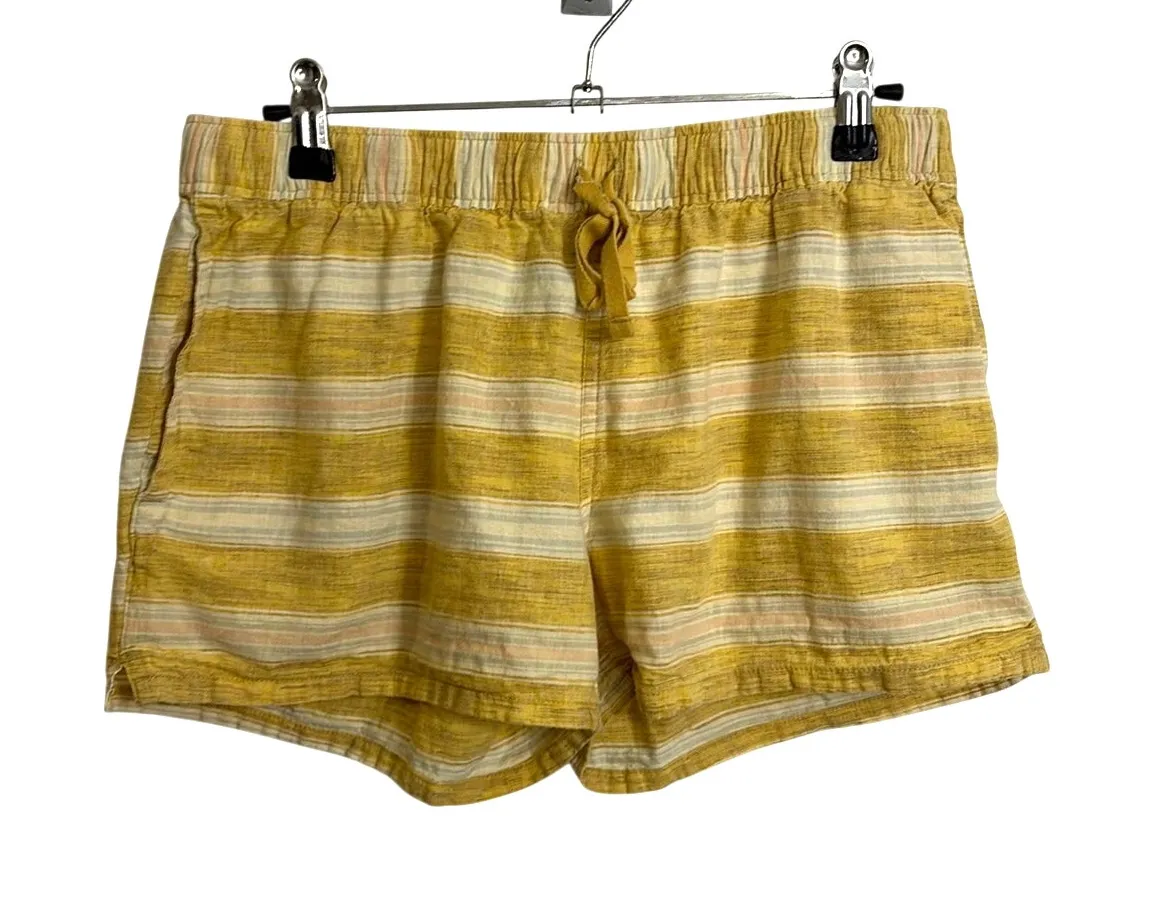 Patagonia Women's Island Hemp Baggies Shorts in Surfboard Yellow with multi-stripe pattern. Crafted... Show more