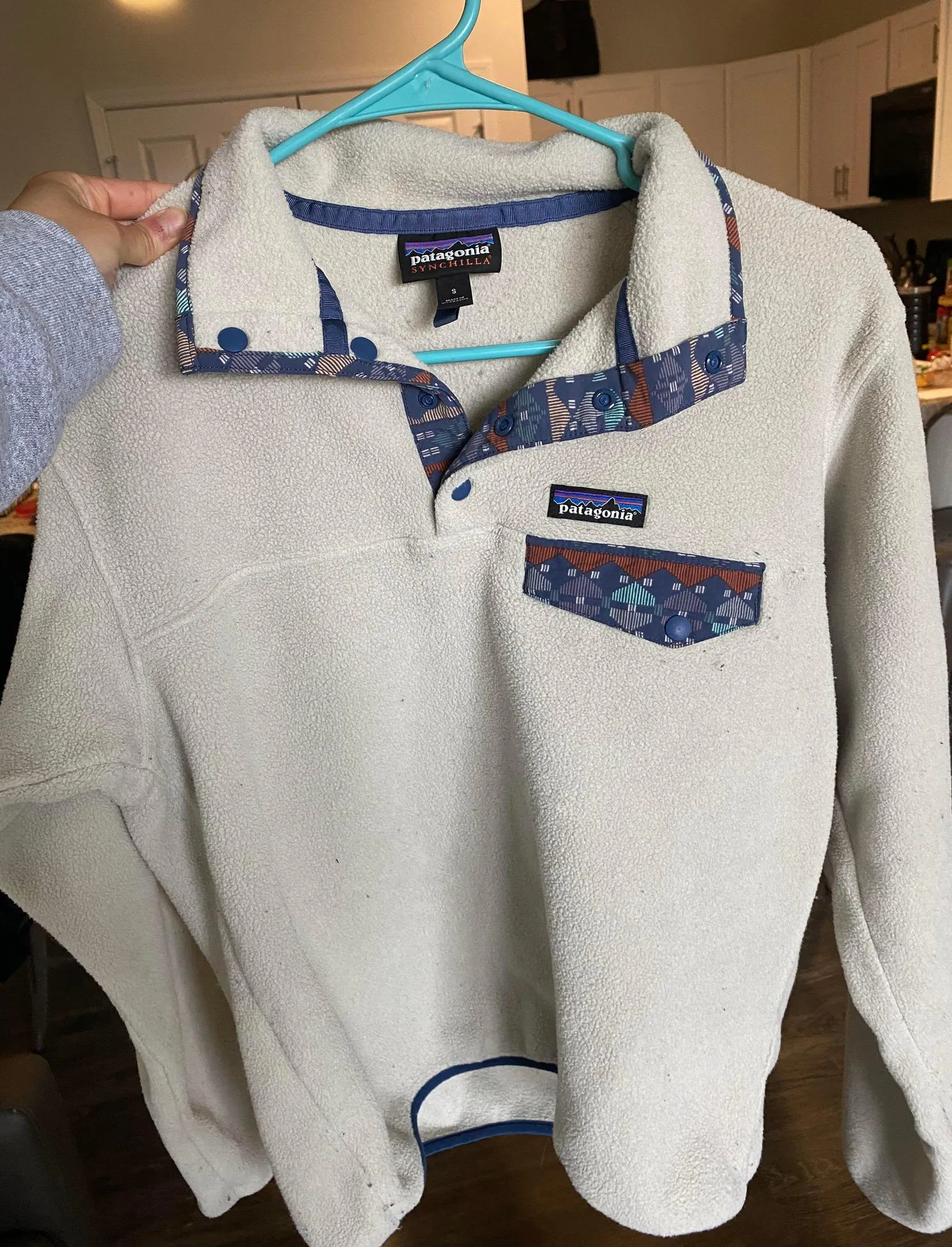 Patagonia snap crew from the Synchilla collection! The tan and blue pattern match with nearly everyt... Show more