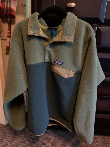 Green Patagonia Synchilla Pullover! In great condition with a small snag on the bottom seam, as show... Show more
