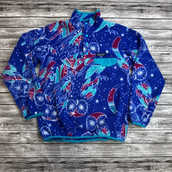 Patagonia Synchilla Snap-T Harvest Moon Blue Owl Fleece RARE Discontinued Pattern 1/4 Snap Sweatshir... Show more