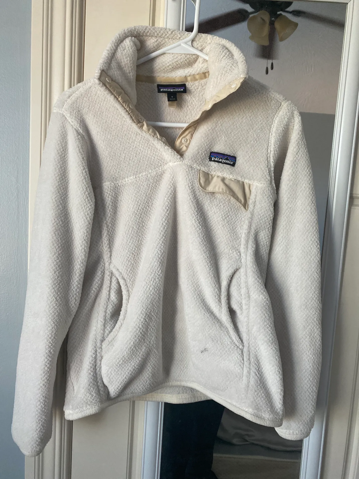 Super cute and soft Patagonia pullover. Bought new, a little worn but no flaws beside stain (showed)... Show more
