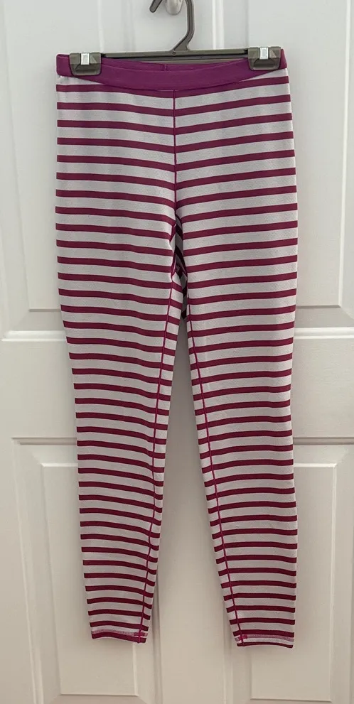 Comfortable striped pajama pants. Features purple and white design. Ideal for lounging. 141