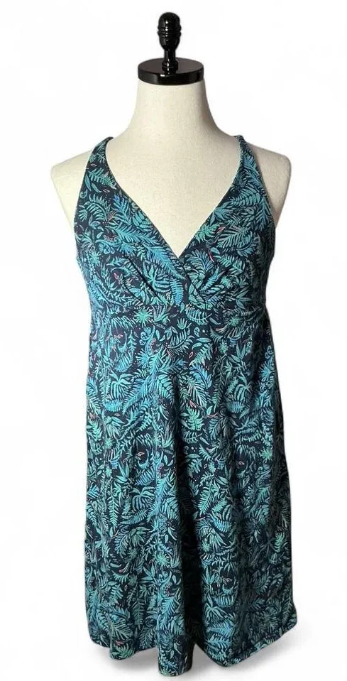 Patagonia Women's Tropical Leaf Print Sleeveless Crisscross Back Midi Dress L A vibrant tropical le... Show more