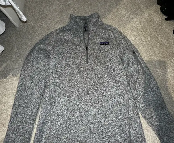 Cozy zip-up sweater by Patagonia. Features a heather gray design. Ideal for layering. Never worn.