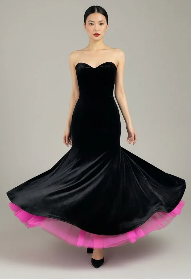 Patra Black Velvet Prom Dress Strapless Pink Tulle Petticoat Size 3/4 Y2K 90s - $33 - From Lisa