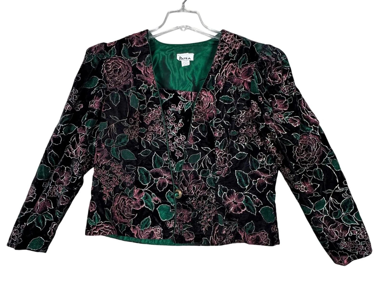 Patra Blazer Green Pink Gold Floral Velvet Jacket Button Front Party Size XL Women's Size XL Extra... Show more