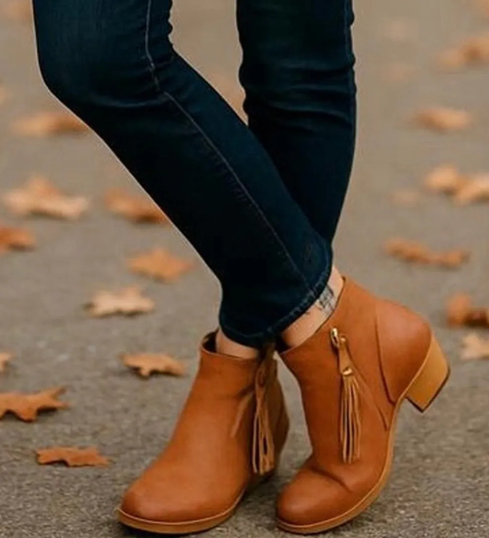 BRAND: Patricia Nash SIZE: Women’s 6M COLOR: Tan / Cognac Brown MATERIAL: Genuine Leather Upper, Wooden Heel CARE INSTRUCTIONS: Spot clean with damp cloth. Use leather conditioner as needed. Step into timeless craftsmanship with these Patricia Nash leather ankle boots. Designed in rich cognac tan leather, these boots feature signature artisan details — a side tassel accent, stitched paneling, and a sturdy wood-look heel. Perfect for fall outfits, boho looks, or casual everyday wear. Handcrafted quality meets chic comfort, making these boots a wardrobe staple for years to come. Measurements (approx): Heel Height: 2.5 in Shaft Height: 4.5 in Condition: Excellent pre-loved condition, light wear on soles. [Model photo and video are AI-generated]