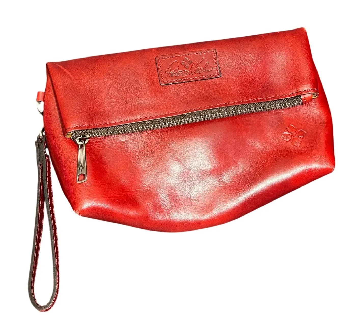 PATRICIA NASH: VALERIE GLAZED LEATHER FOLDING WRISTLET BERRY RED CLUTCH PURSE - $49 - From Sophie