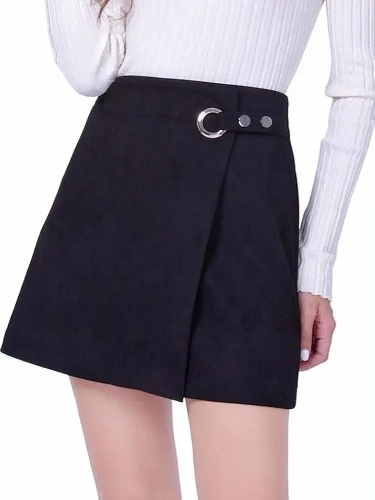 Elevate your wardrobe with this stunning Patrizia Luca Milano black faux suede wrap mini A-line skirt in size M. Perfect for any occasion, whether it's for travel, casual outings, or workwear, this skirt features a solid pattern and a buckle closure. The high-rise design and short length make it a stylish addition to your collection, while the lined material ensures comfort all day long. This skirt is versatile and can be worn in any season, whether it's winter, summer, fall, or spring. The polyester material is durable and easy to care for, making it a practical choice for everyday wear. The skirt is from the Patrizia Luca brand, known for its minimalist and chic designs. Add this skirt to your collection today and step out in style. Whimsigoth, goth, rock, retro, 90s, Y2K #529