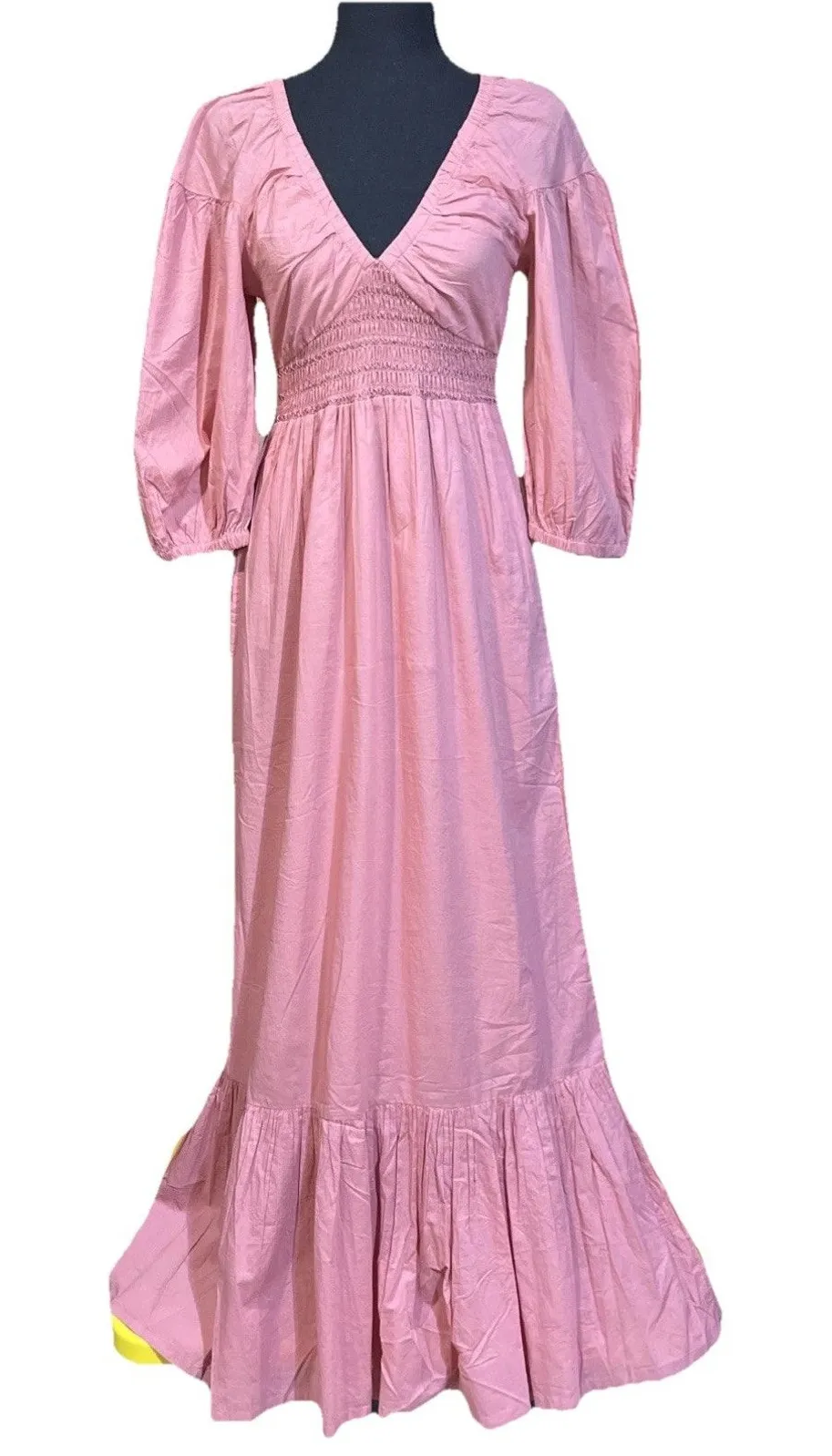 100% Cotton Fully lined Pull over Puff sleeves Hand wash New with tags in new condition. Measurements are approximate Chest 14 inches across pits Waist 23 inches Length 55 inches Sleeve length 20 inches from the shoulder Style profile: Cottagecore, boho, Y2K, Feminine, babydoll,