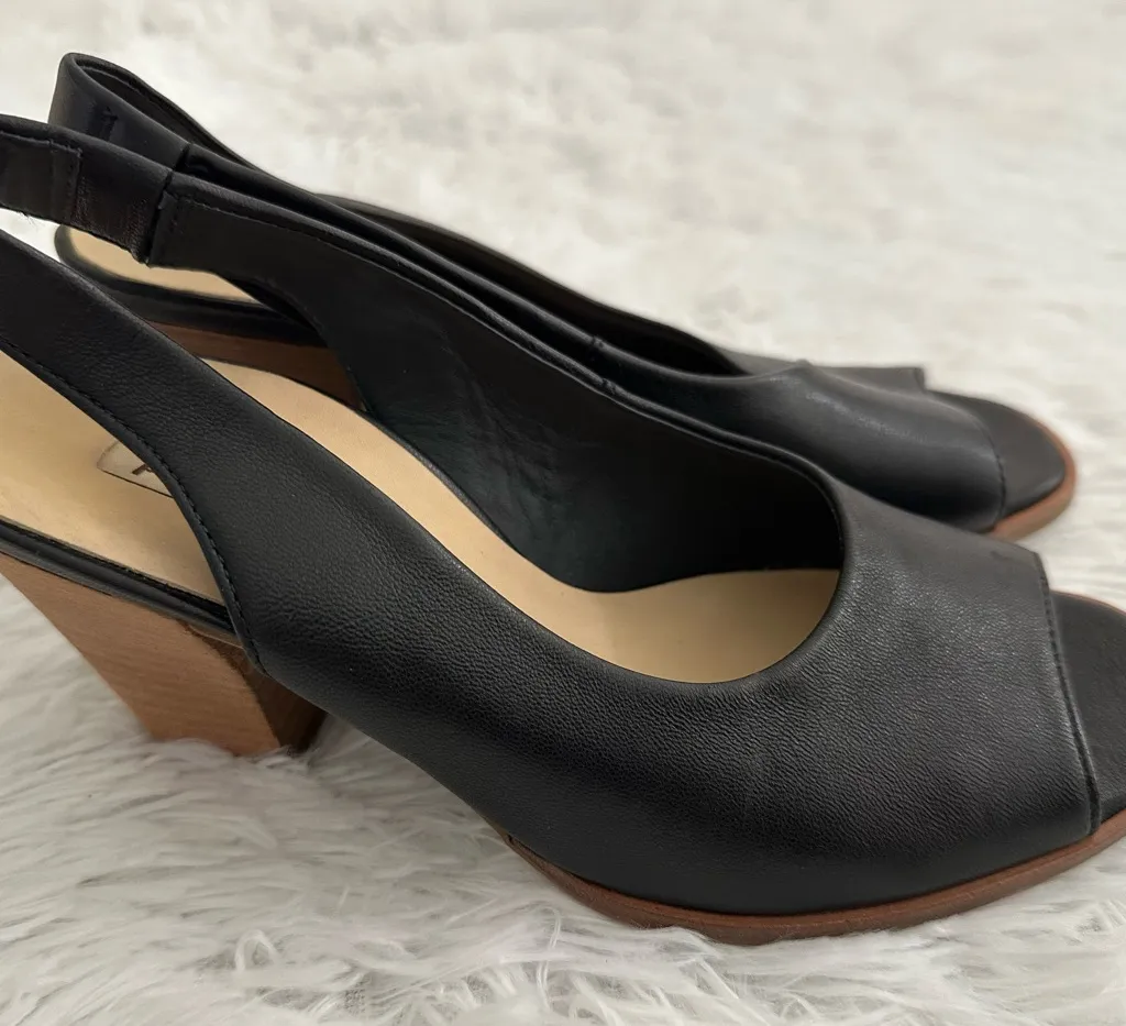 Paul Green Black Leather Savanah Slingback Peep Toe Sandals Heels Shoes‎ 7.5 US - $65 - From Alldressedup