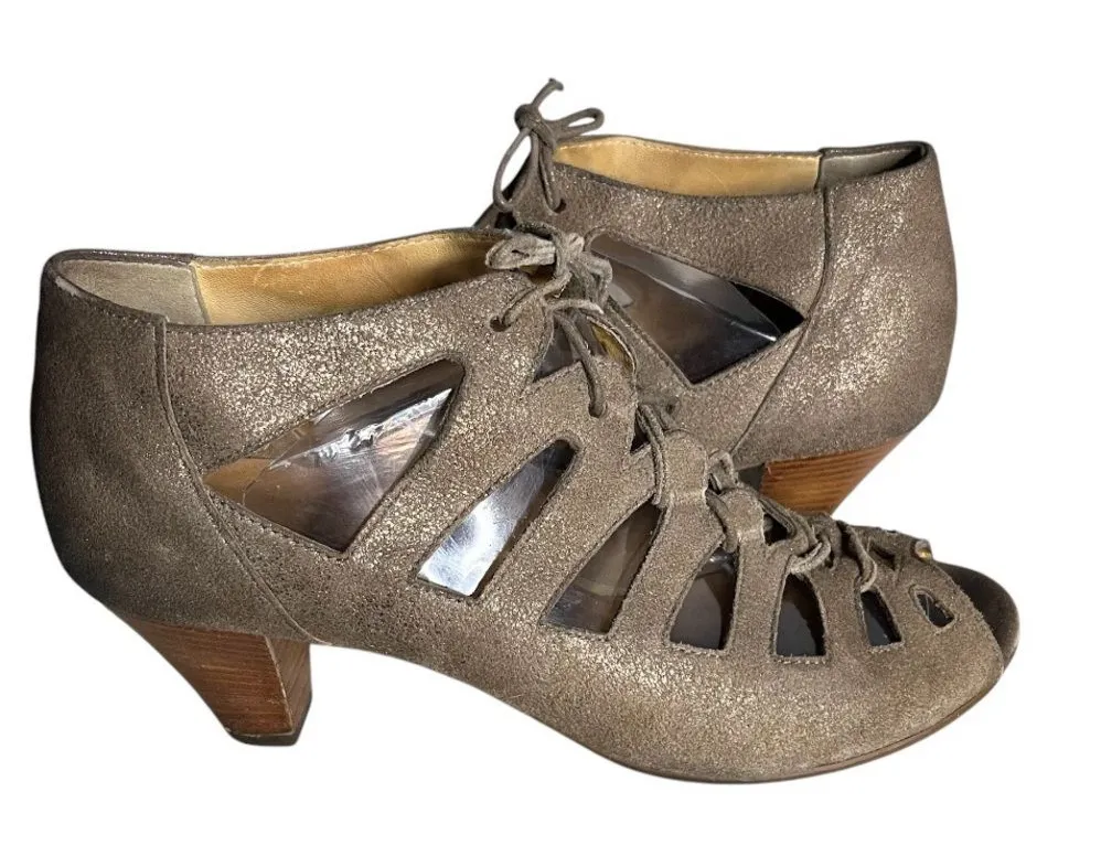 These Paul Green shoes are sort of a dark taupe with a metallic sheen. Featuring peep-toes, a lace-u... Show more