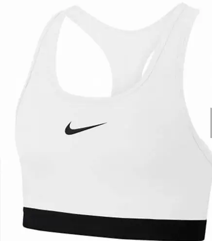 Nike women’s size large athletic bra. Top features Nike Dri Fit stretch material; white body with bl... Show more