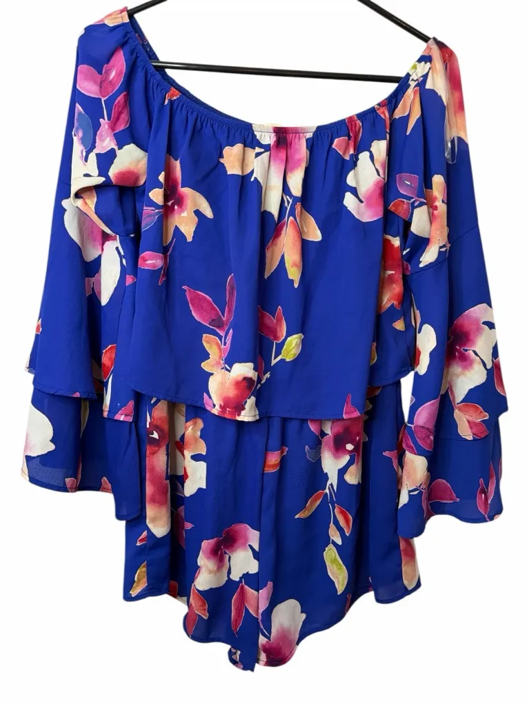 Peach Love Blue Colorful Floral Summer Spring Off The Shoulder Romper Size M Size M - $40 - From Shannon