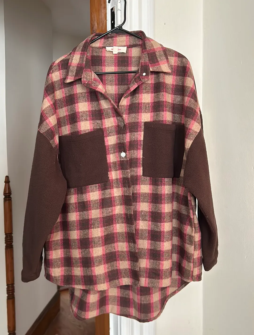 Brown/Pink Flannel Sherpa Jacket Size Medium Flannel with Sherpa Sleeves/Pockets Super soft and Warm... Show more