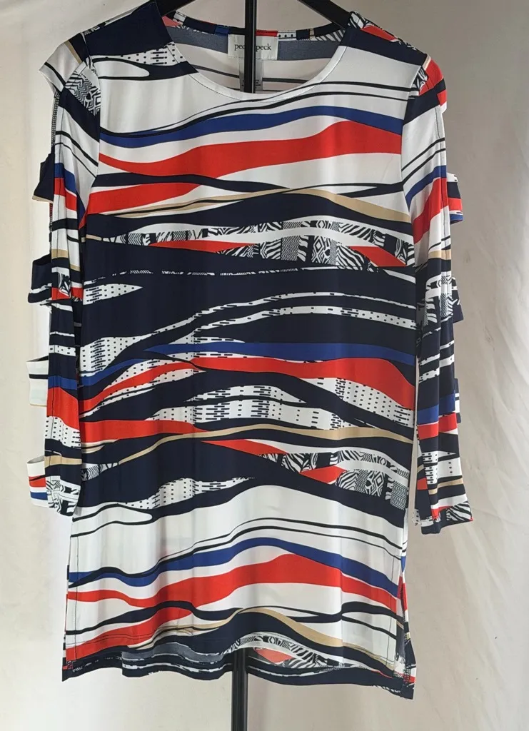 Peck & Peck Long Sleeve Dress with Red, Blue, and Black Stripes Cut Out Sleeves Red Size M - $14 (89% Off Retail) - From Lori